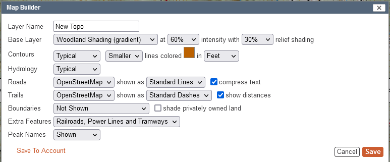 Also, in looking at some of my local area, the FS2016 is arguably more cluttered spacewise, while containing less data (no shaded relief, no trail segment distances.) I think part of it could be the shaded relief that the MapBuilder Topo layer has built in. I tried a custom map builder with and without it, and could see some benefit to removing the shaded relief