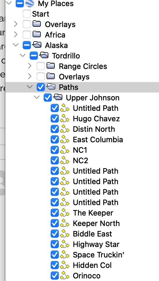 Hello I would love to discuss my work flow issues with your regarding the sub-folders issue. I use Cal-topo as my primary mapping program and so far have been super impressed with the ease of use and ability of the program. I do use it to map ski and hiking trails. When Working with large volumes of objects. The pane on the left of the screen becomes cluttered. Within each trail system there are multiple trails. These trails are line objects or tracks. Than off of this trail there are multiple points such as tree work to be preformed, or notable features. For trail maintenance I would like to do things like a trail folder that contains the trail track and the sub folders of "completed work" and "work to be done". Each containing points that I have found useful. This would help me track changes over time.