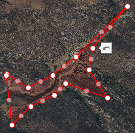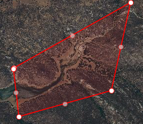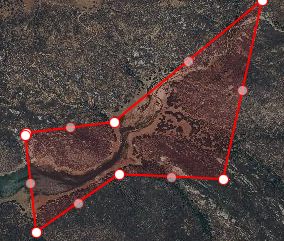Now when I select the area (polygon) and select "edit" in the popup menu, it shows "handles" (bright white) at the corners I defined when I first created it but also ghosted handles (dimmed white) in between;