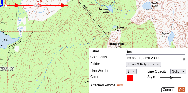 All those things are in the caltopo app, but the "add bearing line" uses none of those existing services.