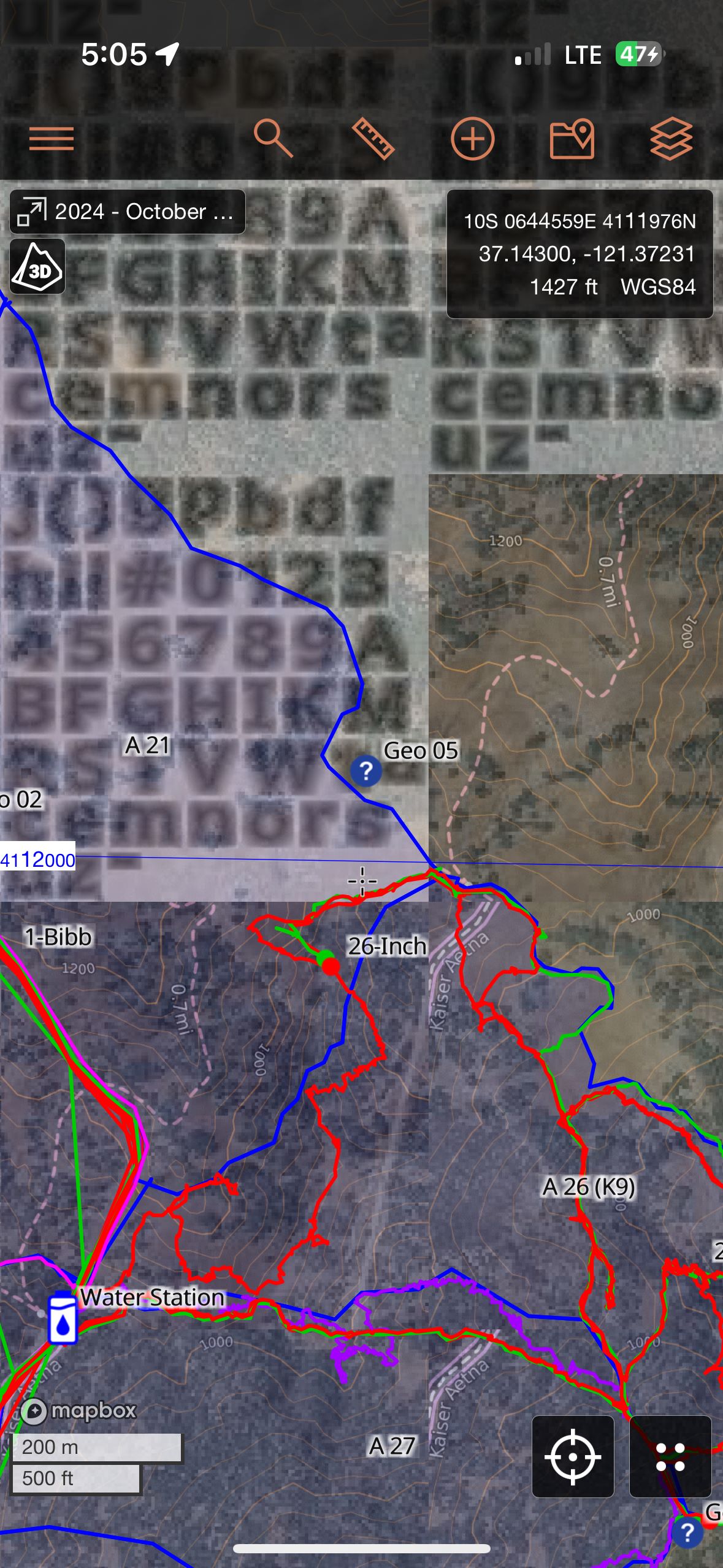 It's really hard to tell for sure from the screenshot, but this looks to me like an area where tiles were not downloaded for offline use, and a reliable cell connection was not available. It looks to me like this zoom level is within our standard resolution download, so not a question of only downloading standard resolution and then zooming in further. I'm not suggesting that you didn't actually download map tiles, only that it looks like for whatever reason, the app doesn't think it has them.
