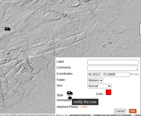 - Create a marker, and set its style to the new cow icon:
