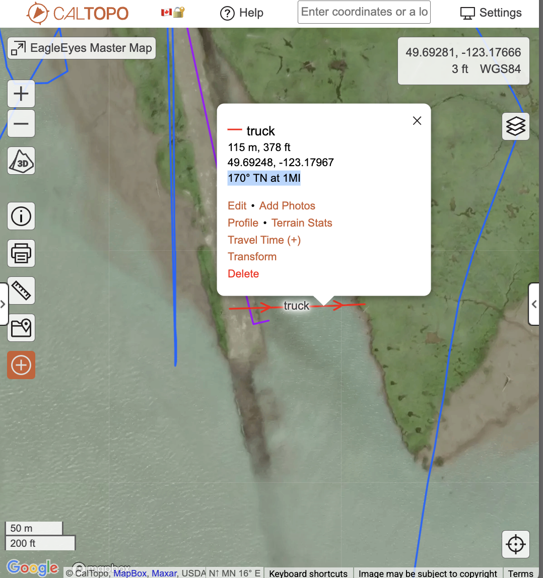 If you add a bearing line, then edit it, and drag the ends around, the label on the line shows the ORIGINAL line parameters, not the new ones after editing. E.g. see following screenshot. Originally I had the line at 170 deg, 1 mi, then dragged the ends around so it was closer to 90 deg, 378 ft, but label still shows 170°TN at 1MI,
