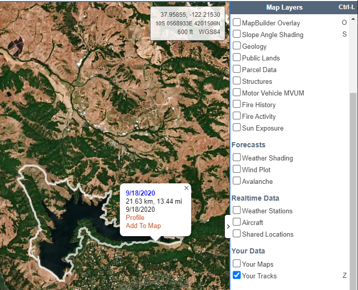 Again, I am not sure why Wendy does not give you the option to add it to your map. Did you record it on your GPS and just import the gpx file into CALTopo? I am thinking that CALTopo may not recognize it as a CALTopo "track" that has certain characteristics. I believe the one that I selected earlier was probably created by the CALTopo Mobile App and not imported from a GPX. That may ne the difference.